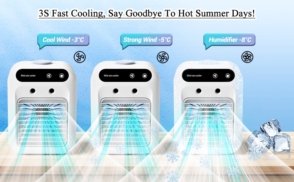 Air conditioner portable used as desk fan, humidifier or portable fan. Simple operation, enjoy your cooling summer. In the summer, it is the ideal good for you, your family and friends.